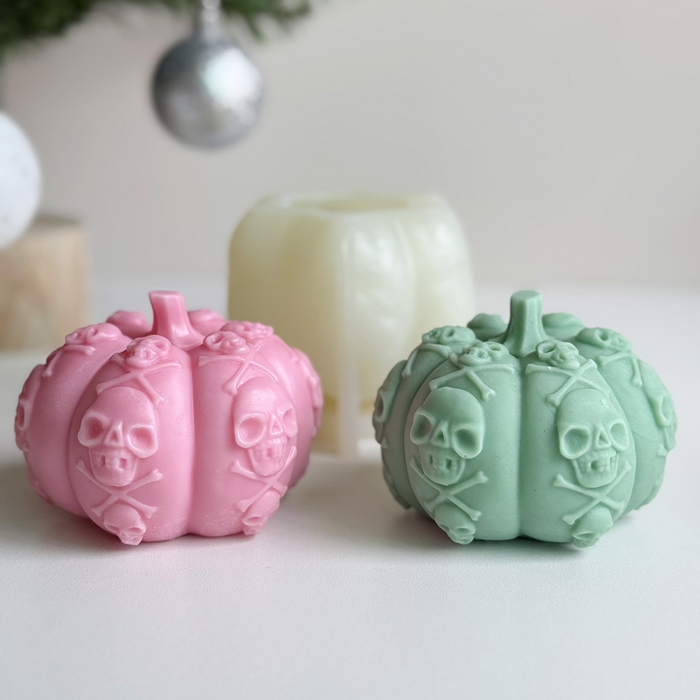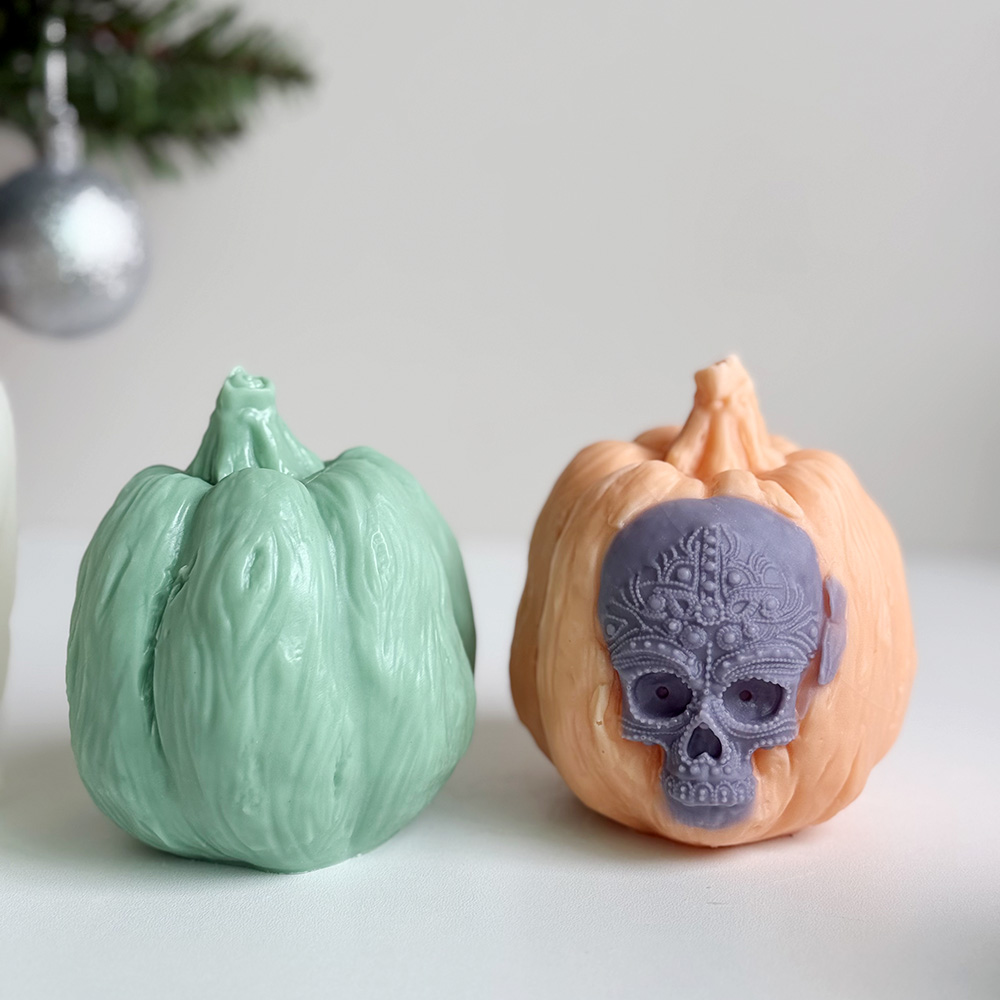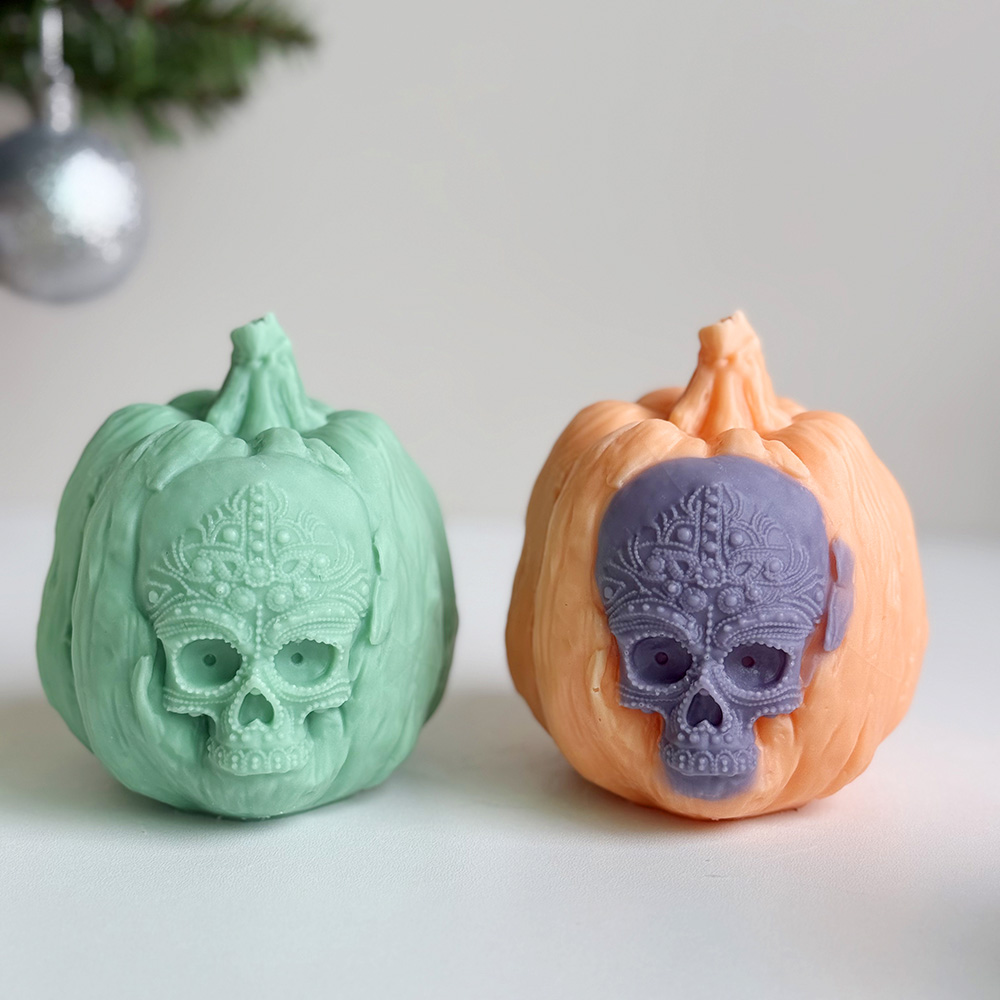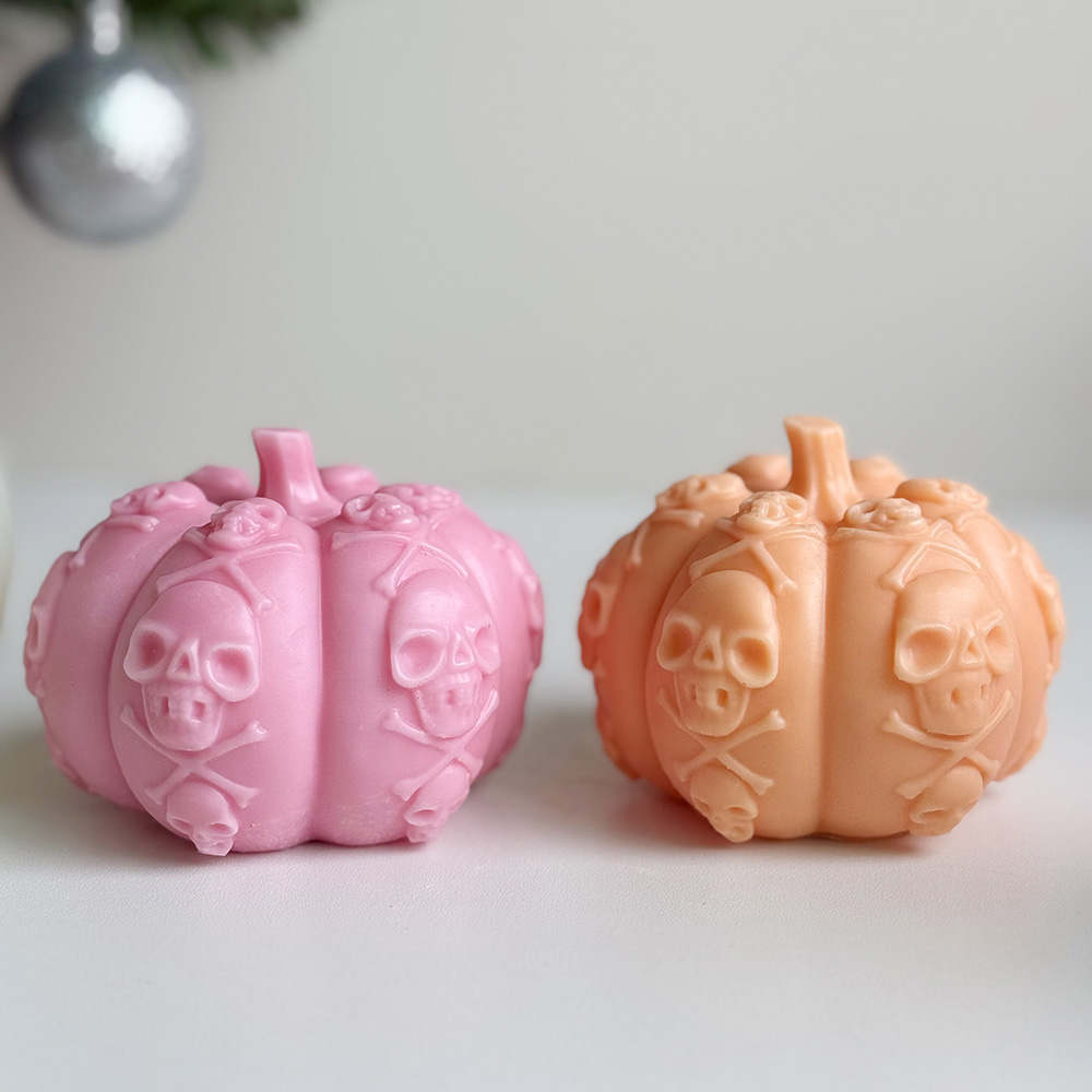 Pumpkin - Shaped Candle Molds with Skull Elements