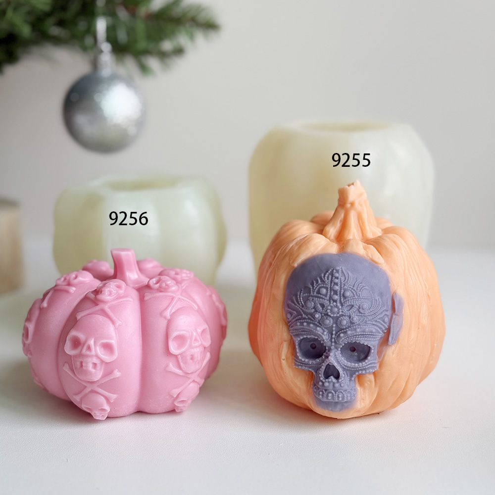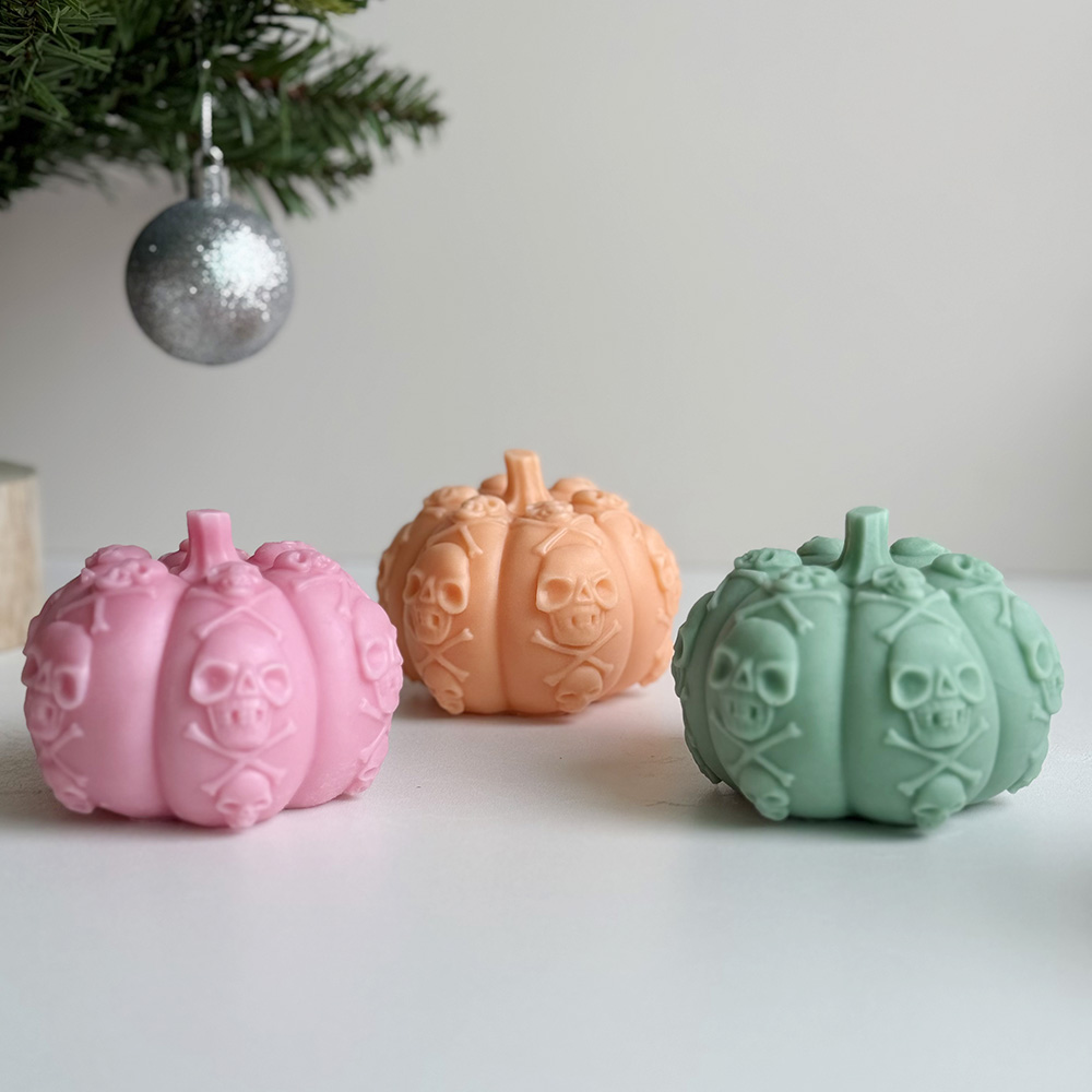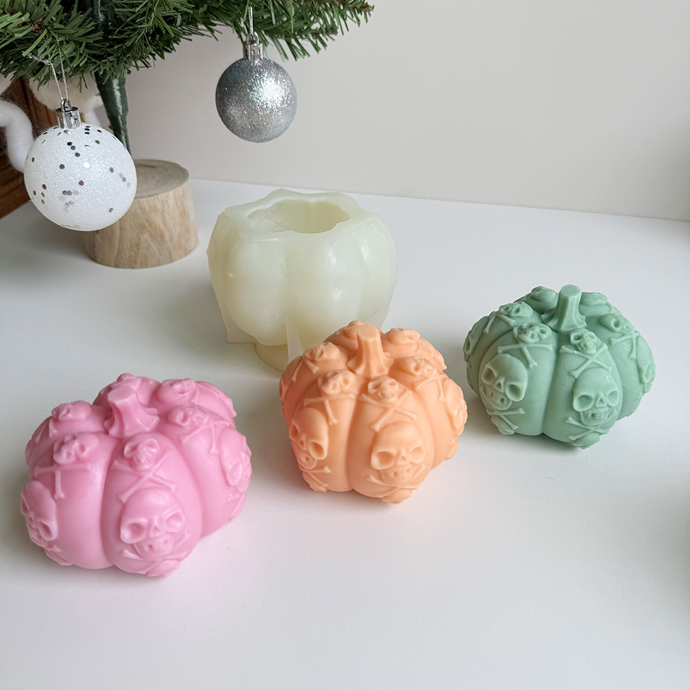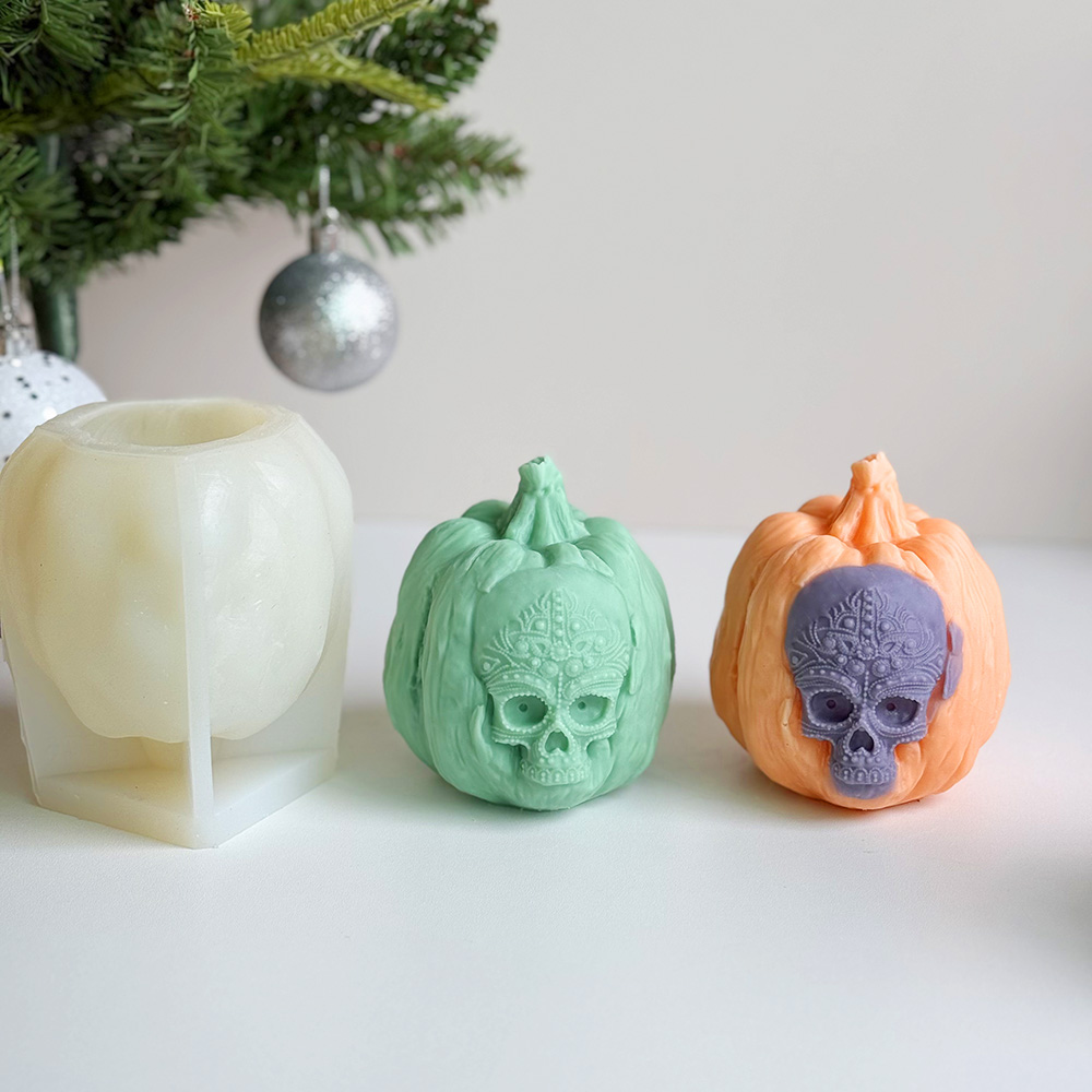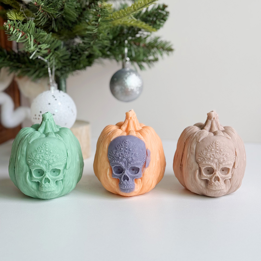 Pumpkin - Shaped Candle Molds with Skull Elements