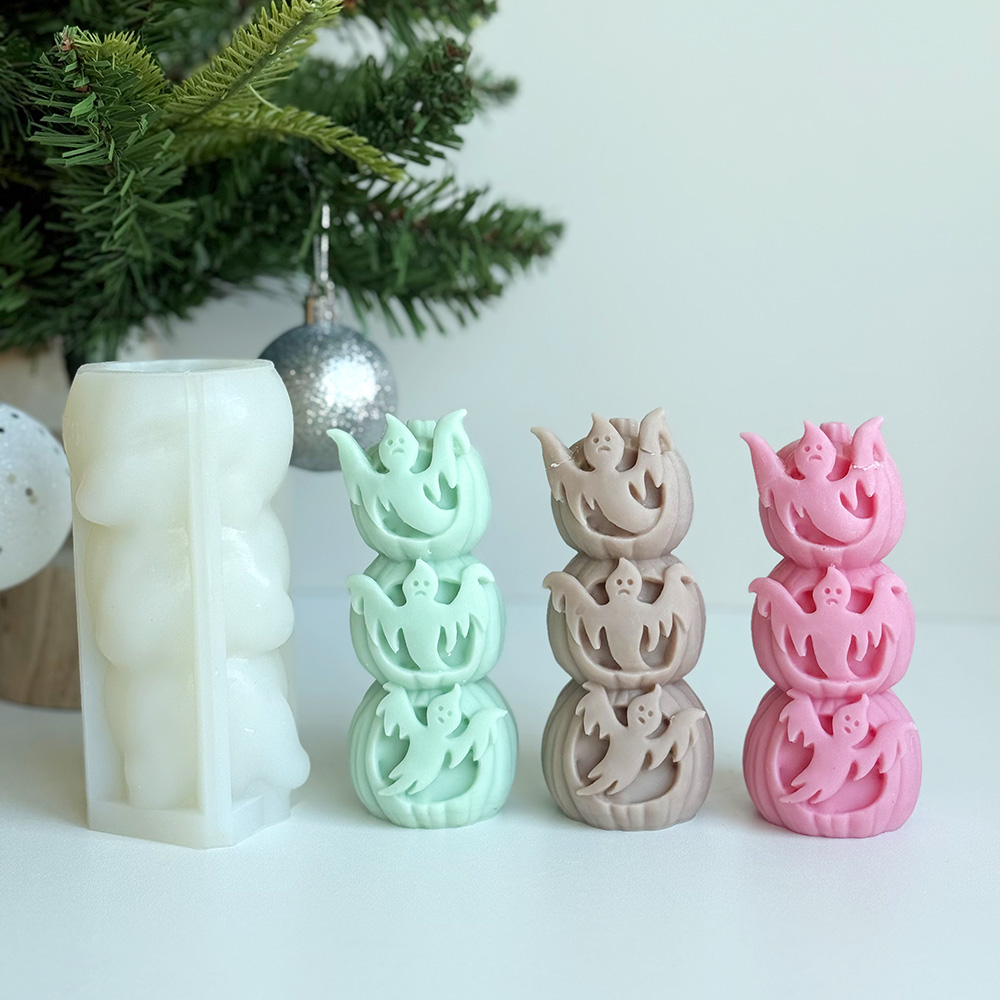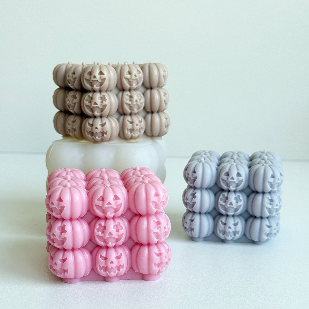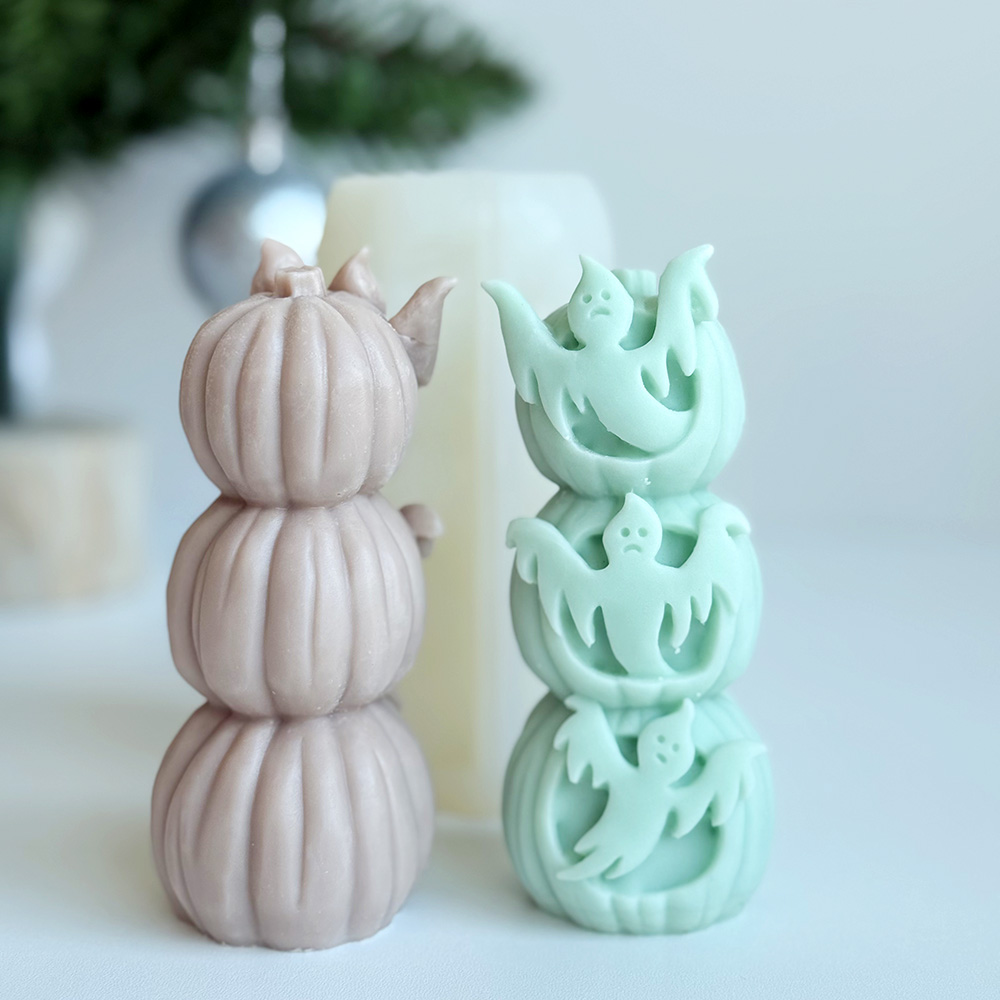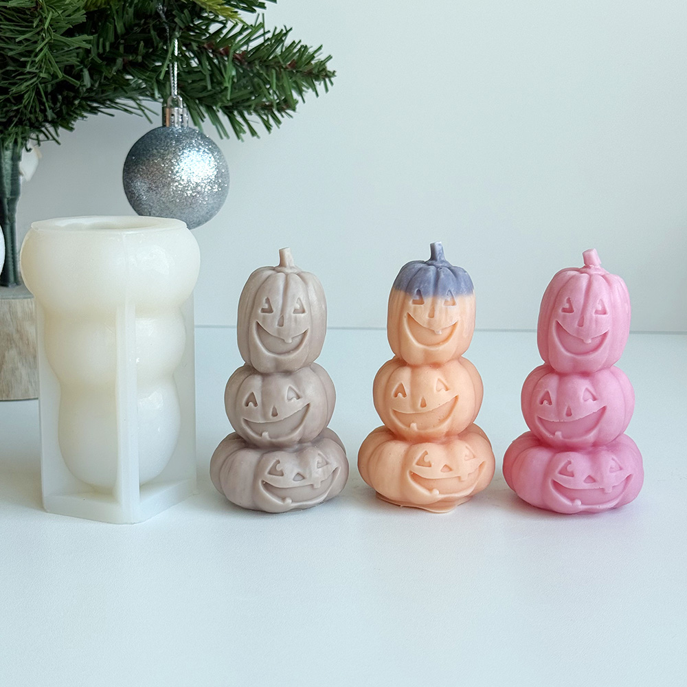 Pumpkin - Shaped Candle Molds with Skull Elements